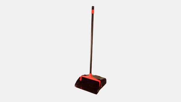 This large dust pan has a handle and rear wheels which makes it easy to transport around for dust collection as you sweep.